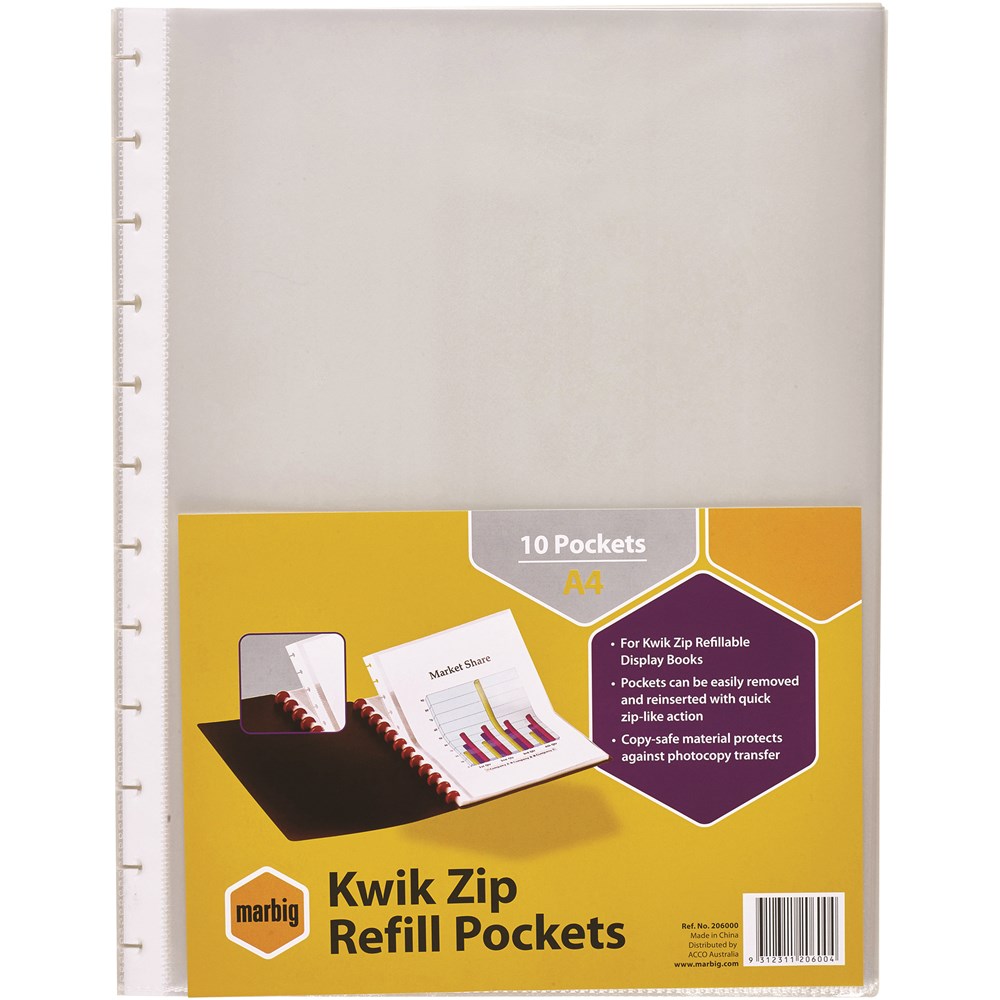 • Marbig Kwik Zip Display Book Refills A4 Clear Pack Of 10 0
