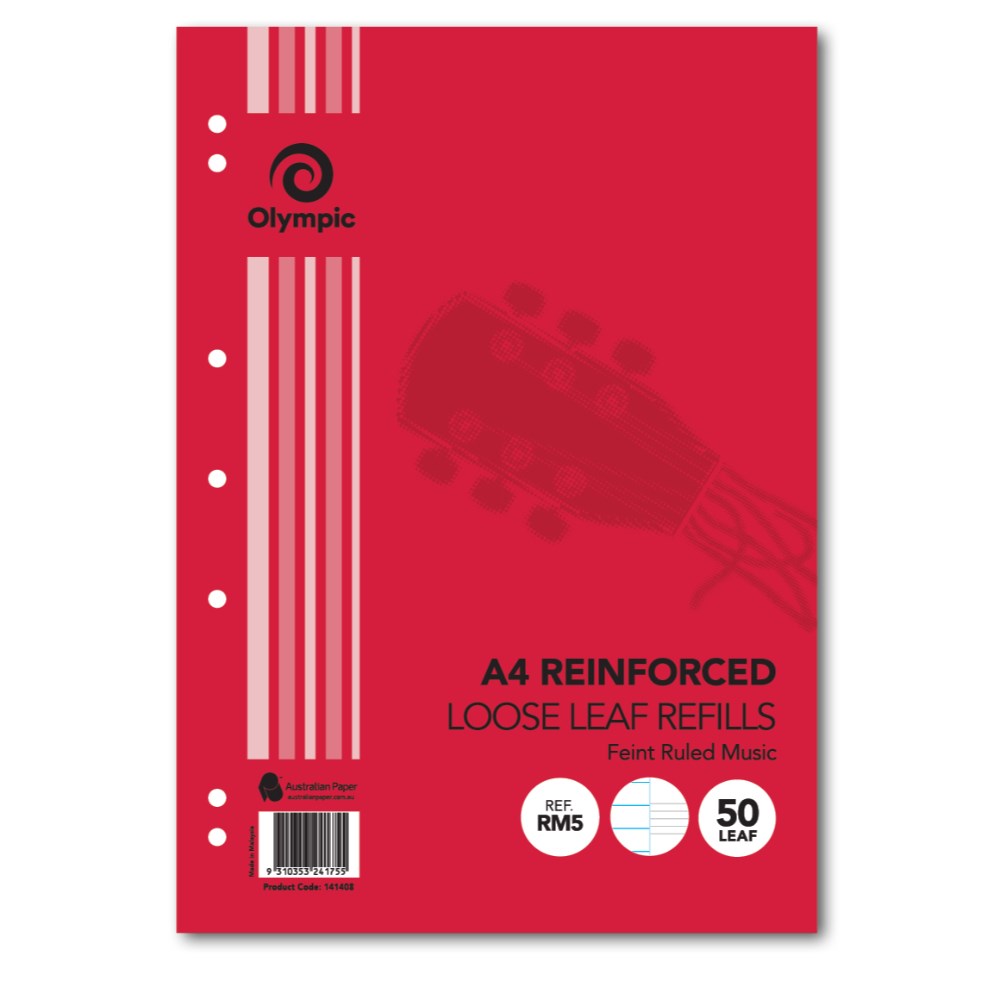 OLYMPIC REINFORCED REFILLS A4 297x210mm Ruled Music Pack of 50