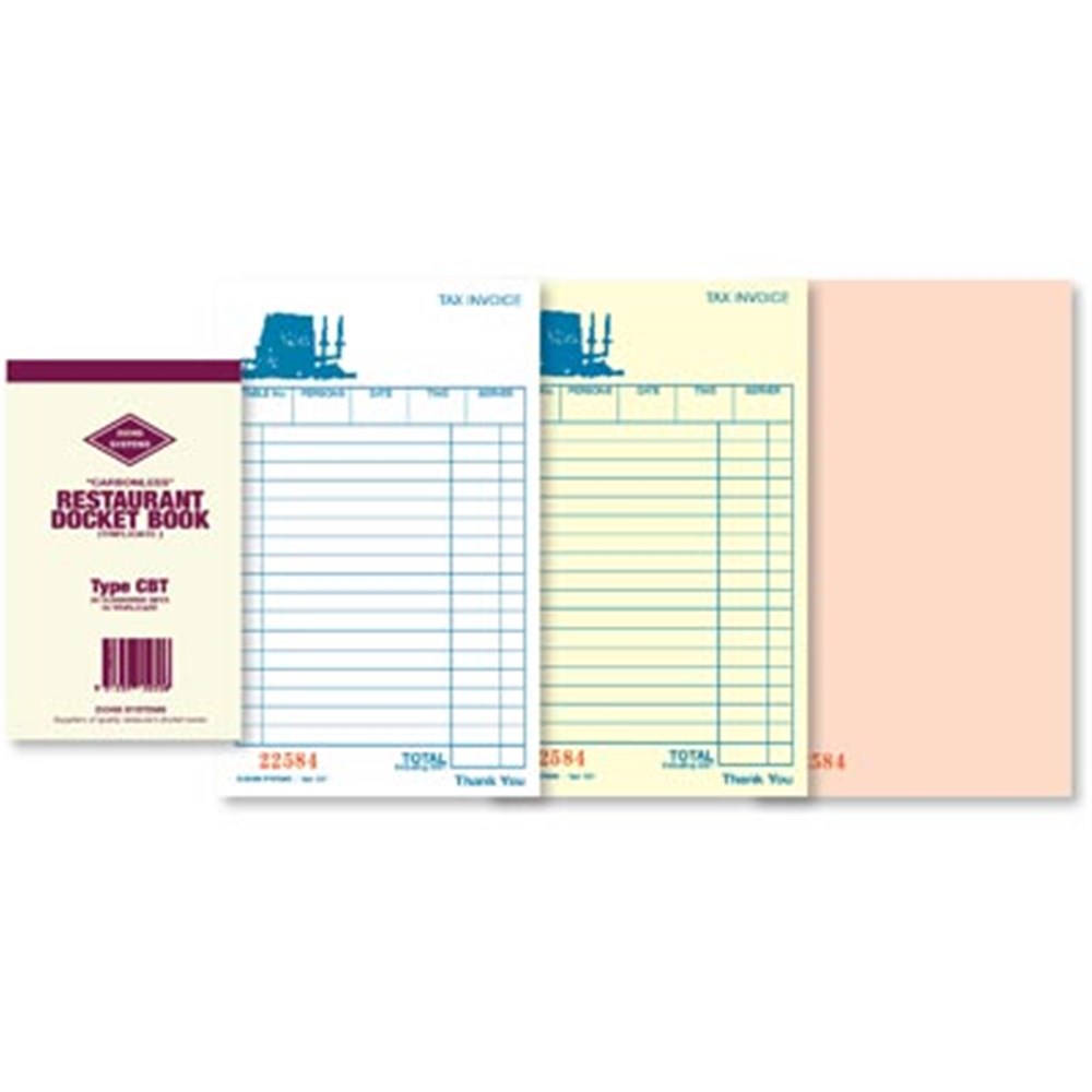 • Zions offers a wide range of single, duplicate, triplicate and quadruplicate restaurant docket books, suitable for all styles of bistros, cafes, restaurants and take-away outlets.