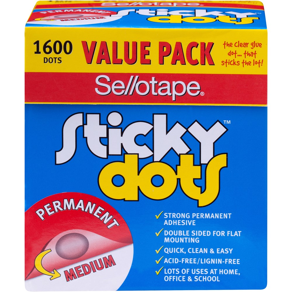 • Sellotape Sticky Dots Value Pack 10mm Permanent Adhesive Clear Pack of 1600