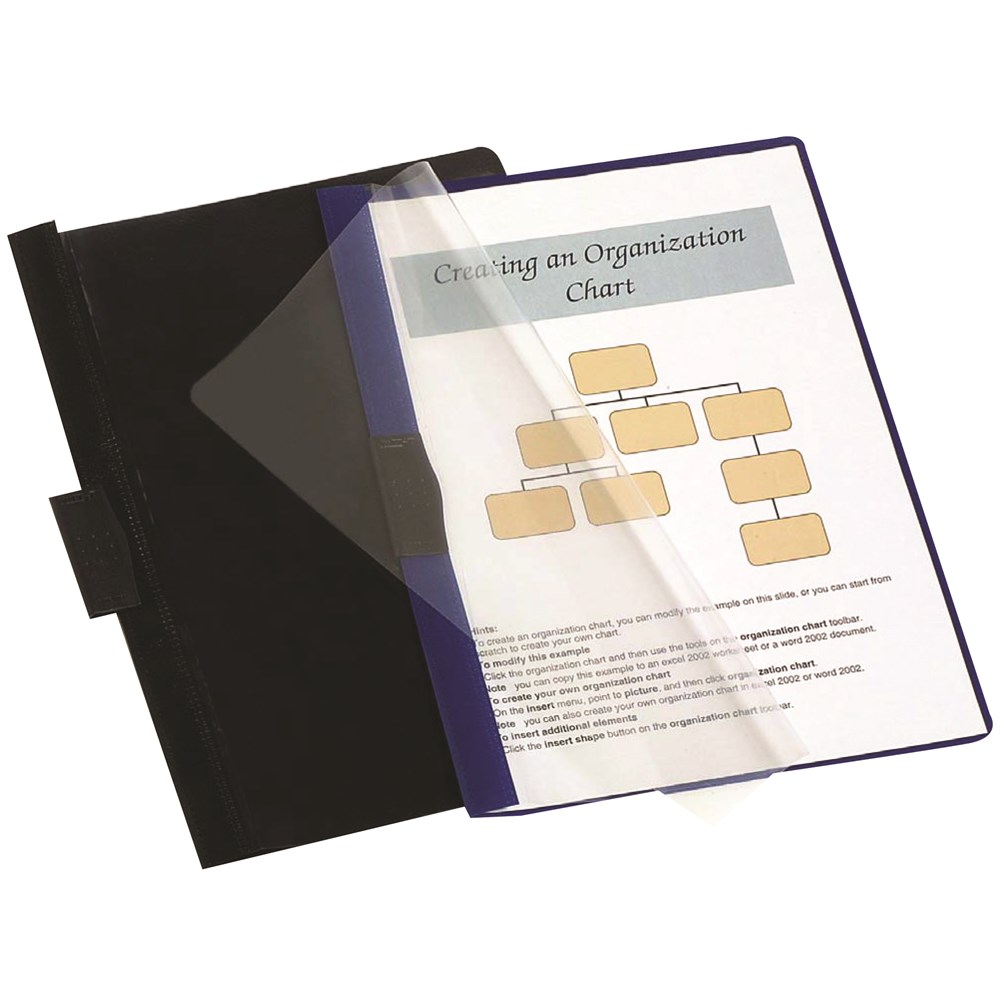 • Clear front cover with a clip system on the spine to secure unpunched paper, quickly and easily..