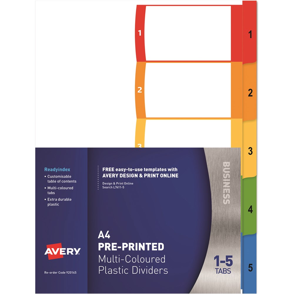 AVERY L7411-5 READY INDEX PP A4 1-5 Index Asstd Tabs