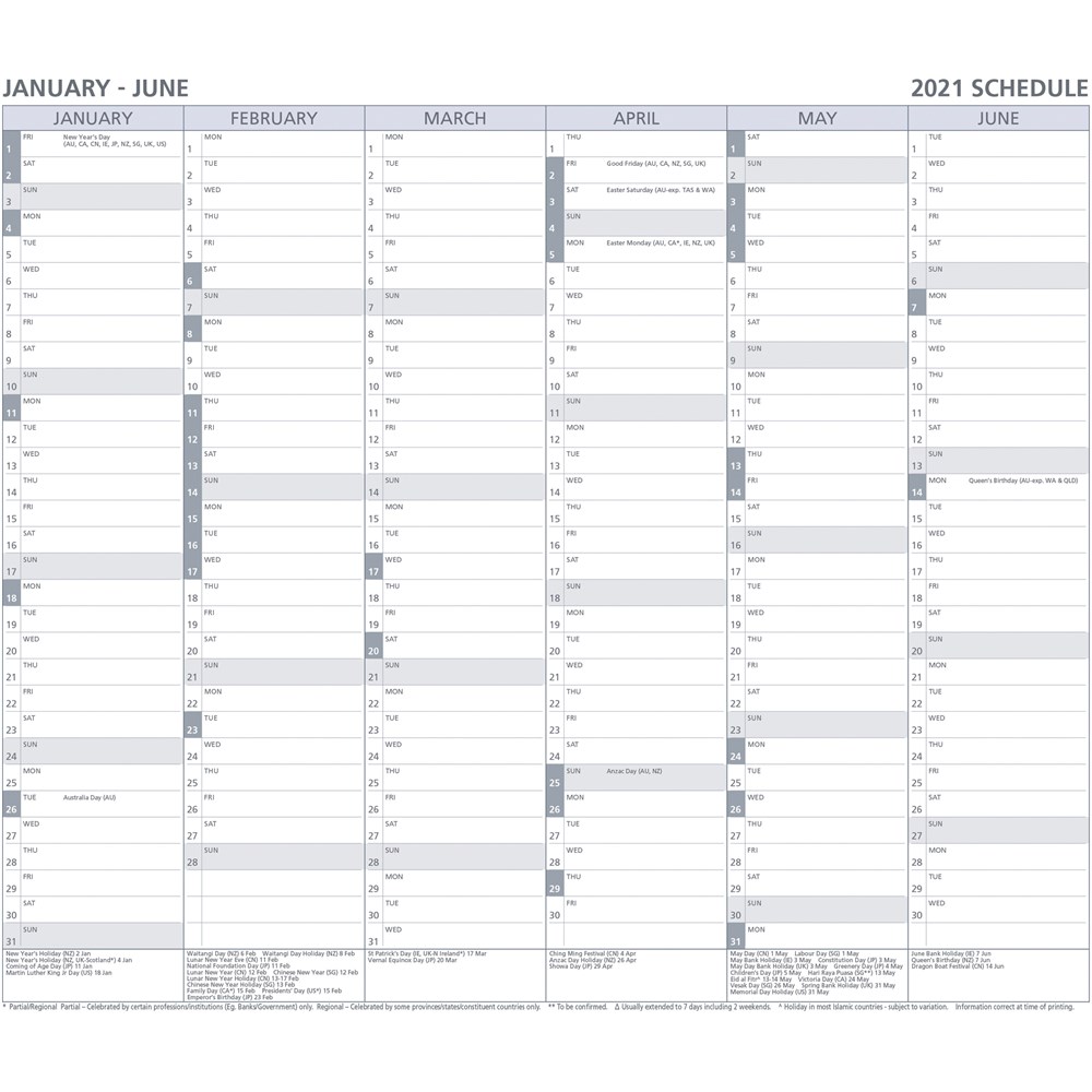• Layouts may vary slightly in different sized organisers..