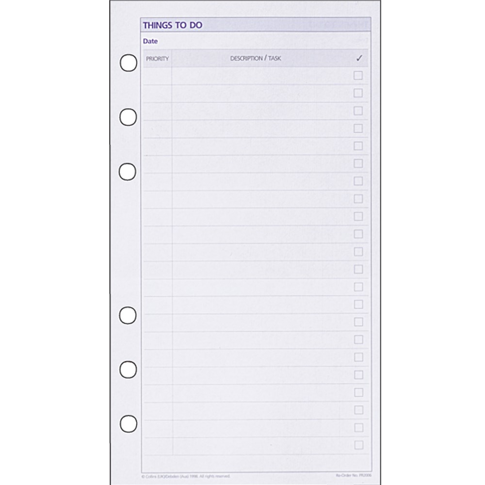DEBDEN DAYPLANNER REFILL A4 Things To Do