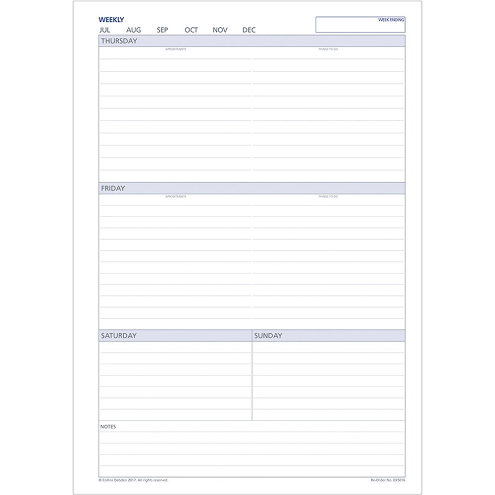 DEBDEN DAYPLANNER REFILL A4 Weekly Non-Dated Calendar