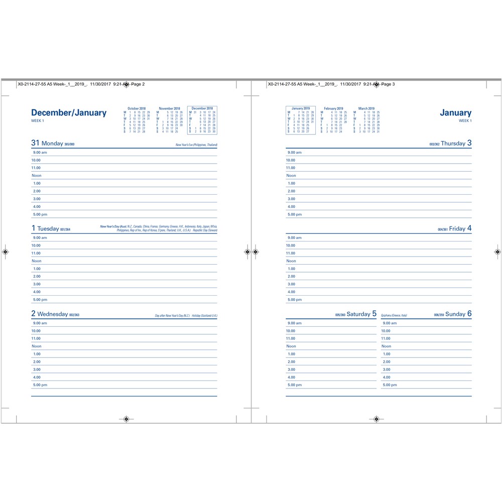 Bright sophisticated and very European! Features include : Secure elastic wrap enclosure in complementary colours Australian and international holidays 3 year calendars Storage pocket on back cover