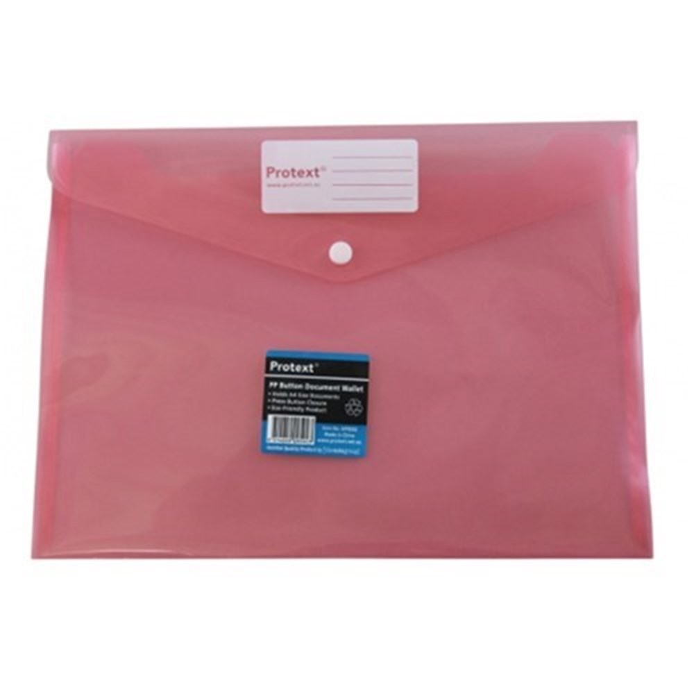 (NPM-NP9592) - PROTEXT A4 DOCUMENT POCKET Poly Button Closure RED/PINK
