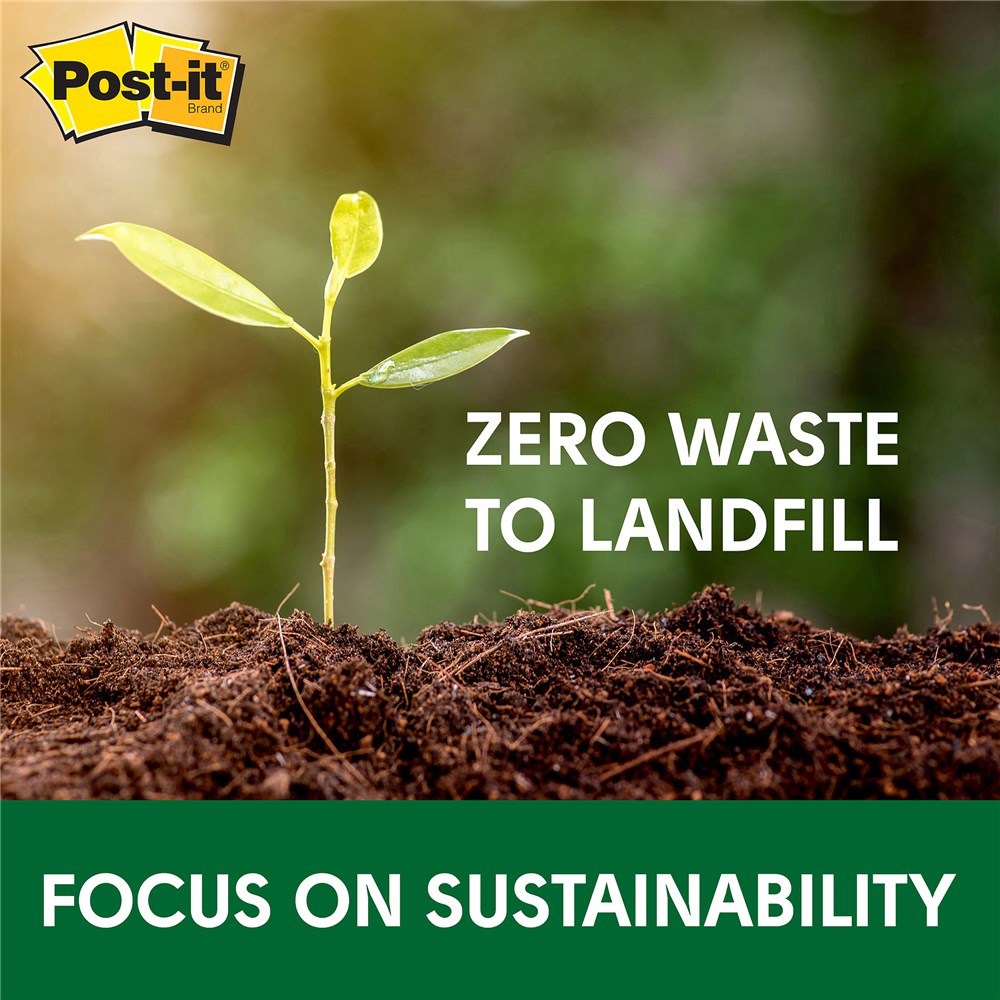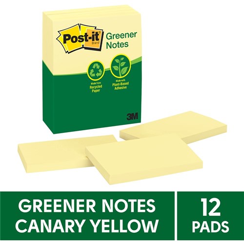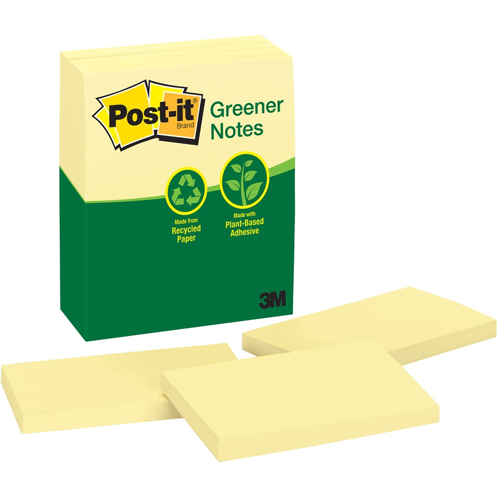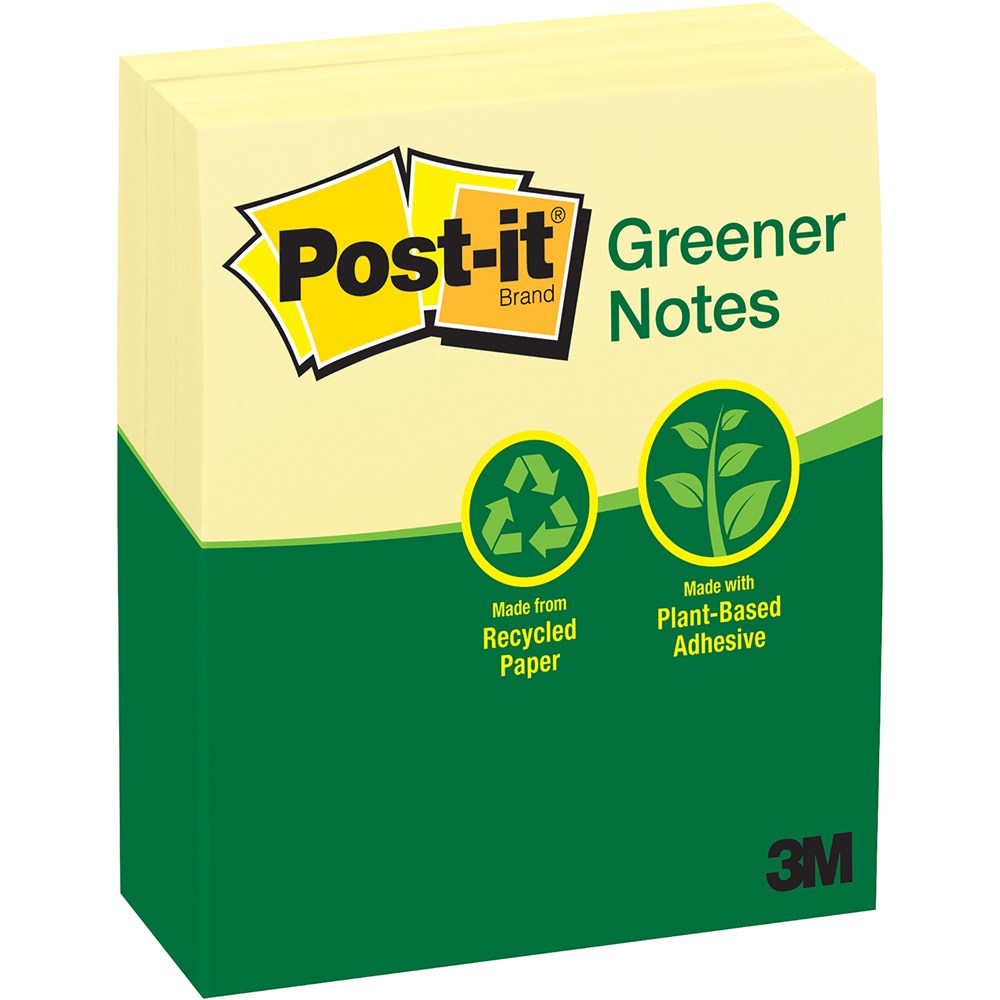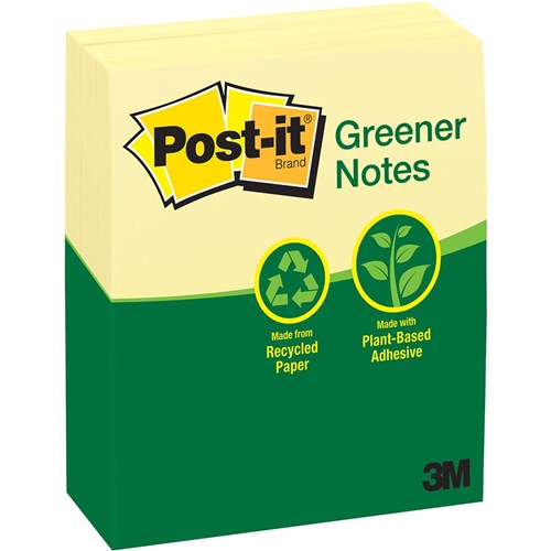 • Post-it® Greener Notes in 76mm x 127mm size are made from 100% recycled paper and a plant-based adhesive - which means no new trees were used.