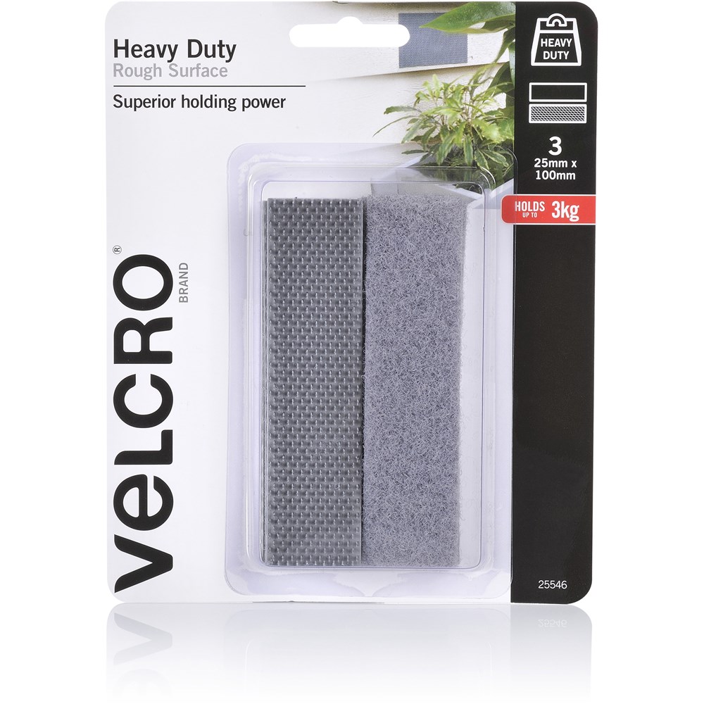 Velcro Brand Heavy Duty Rough Surface Hook & Loop 25 x 100mm Pack Of 3 Grey