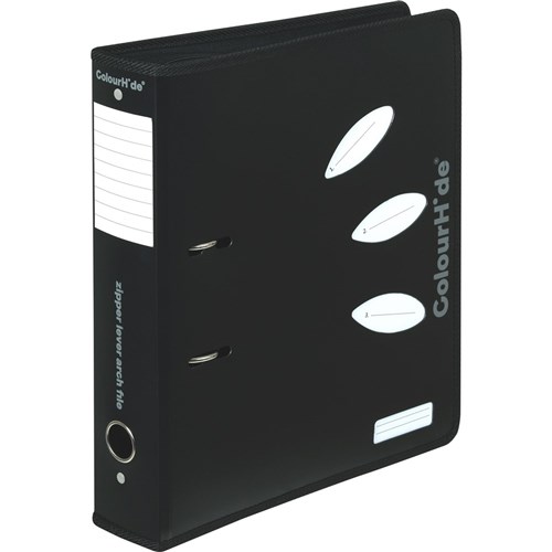 ColourHide Zip Lever Arch Binder A4 70mm PP Black 0