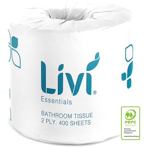 • Livi Essentials Toilet Paper Rolls 2 Ply 400 Sheets Box Of 48