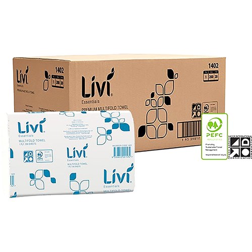 • Livi Essentials Hand Towel Multifold 1 Ply 200 Sheet Box Of 20