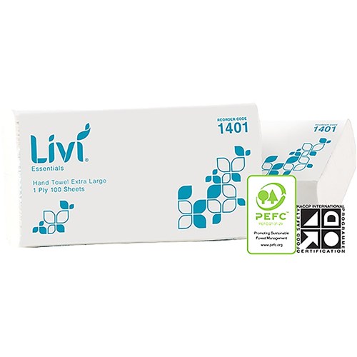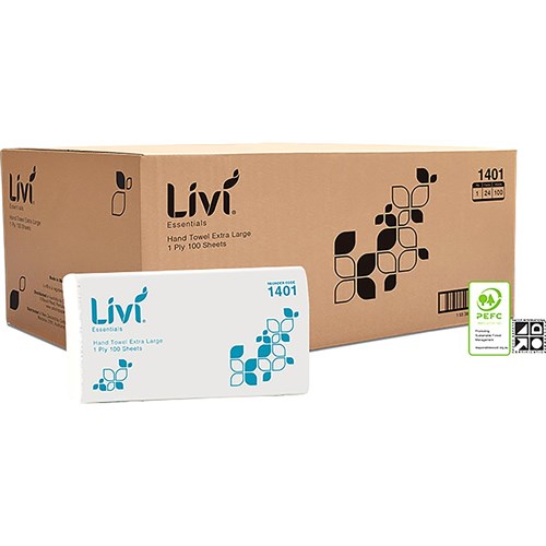 • Livi Essentials Hand Towel Extra Large 1 Ply 100 Sheets Box Of 24