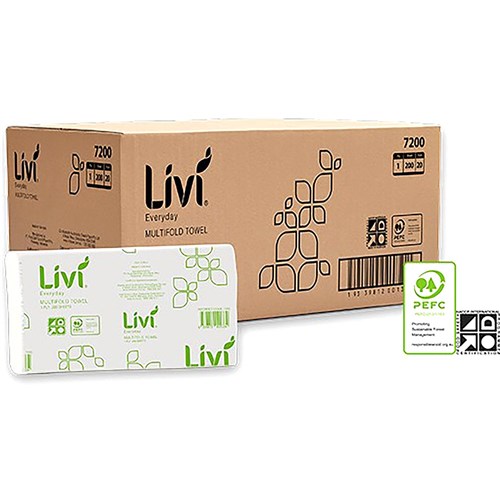 • Livi Everyday Hand Towel Multifold 1 Ply 200 Sheets Box Of 20