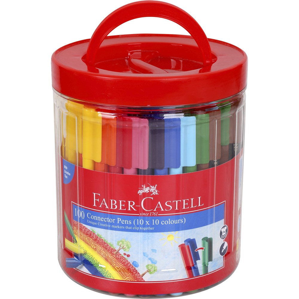 Faber-Castell Connector Pen Colour Markers Assorted Tub of 100