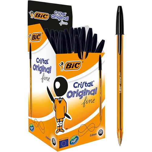 • Bic Cristal Ballpoint Pen 0.8mm Fine Black Box of 50