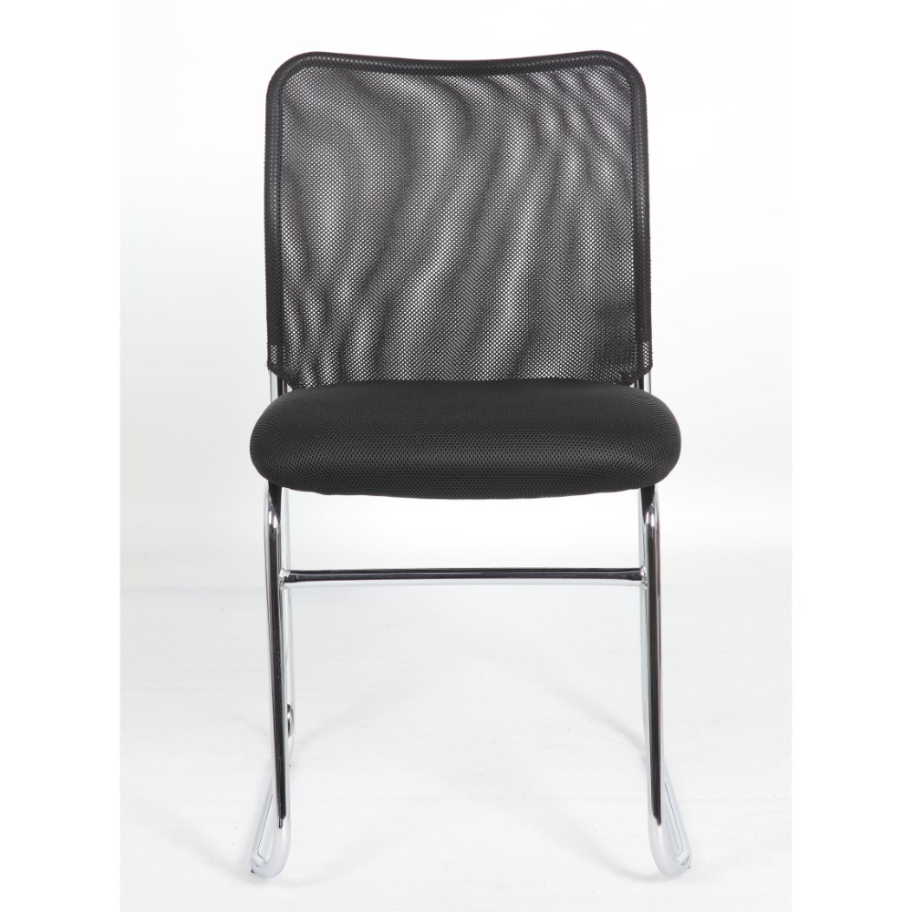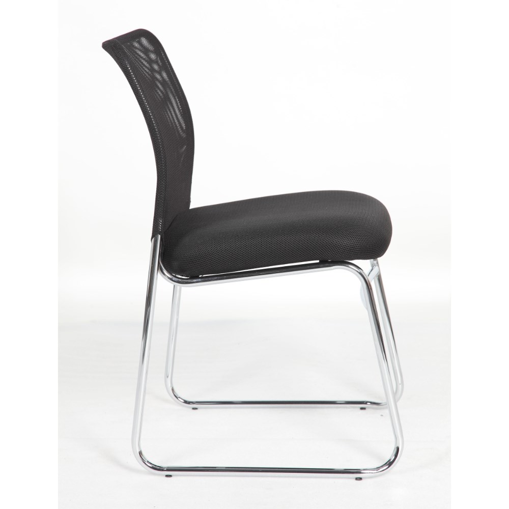 Studio Visitor Chair Chrome Sled Base Mesh Back Fabric Seat Black