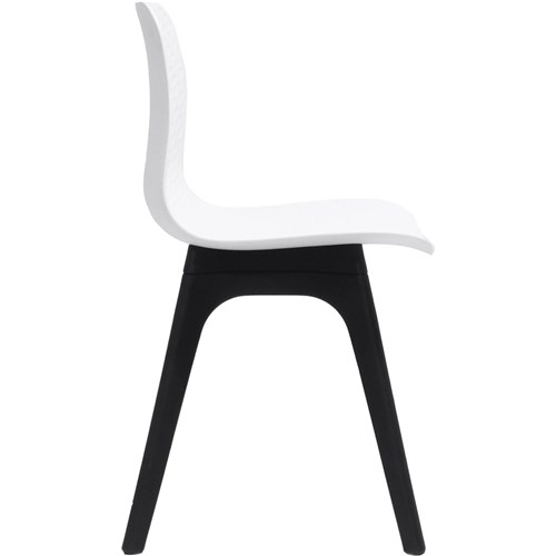• Rapidline Lucid Breakout Room Chair Black Timber Leg White Patterned Poly Shell