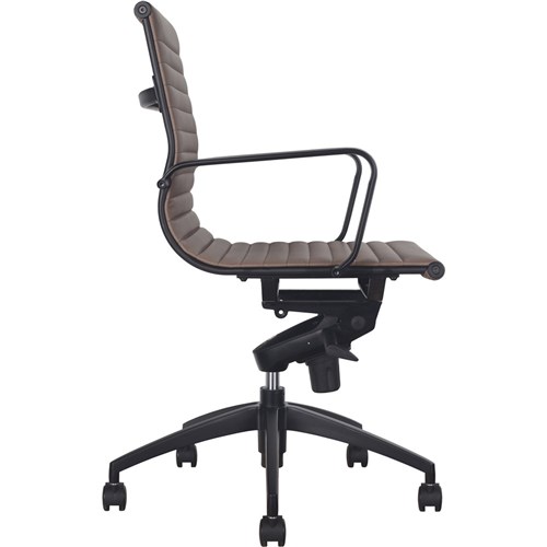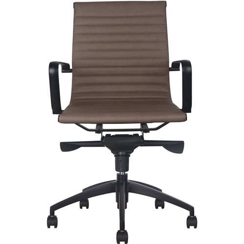 • Rapidline PU605M Boardroom Chair Black Base And Arms Medium Back Tan Ribbed PU