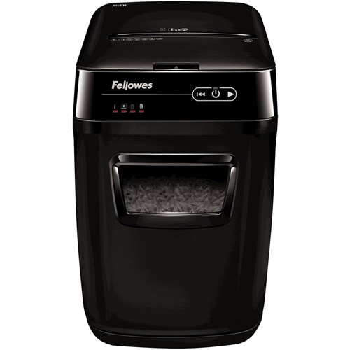 • Auto reverse, auto feed, bin full light, Can shred staples, credit cards, paper clips CD's/DVD's.