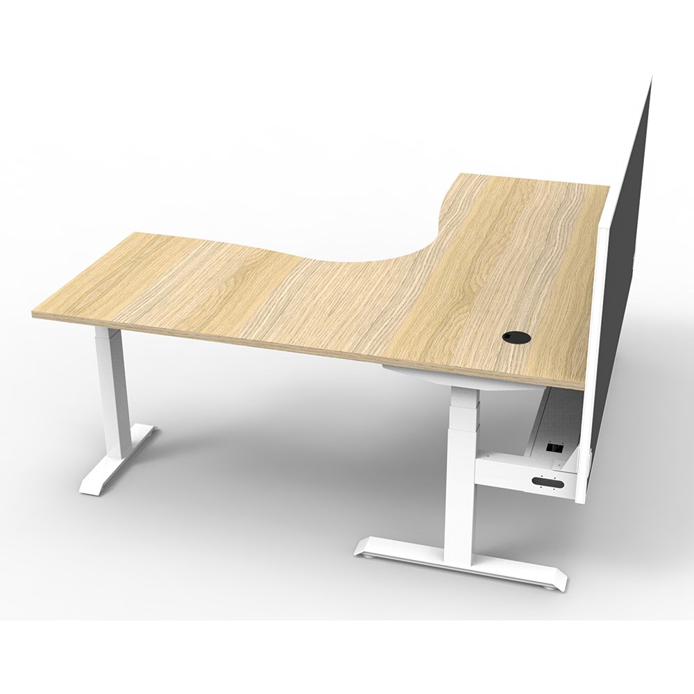 • Dual Motor 3 stage motorised legs. Corner Workstation with Cable Tray and Screen.