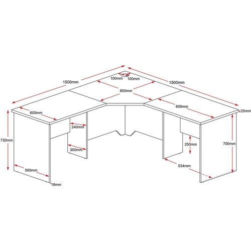 Rapidline Rapid Worker Corner Workstation 1500/1500W x 600D x 730mmH Oak And Ironstone