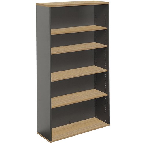 Rapidline Worker Bookcase 4 Shelves 1800Hx900Wx315mmD Natural Oak and Ironstone