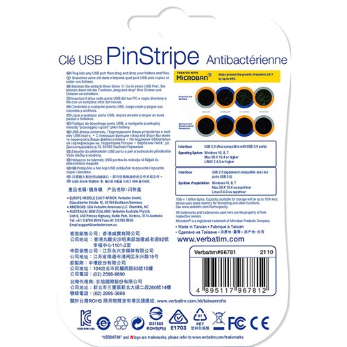 Verbatim Store 'n' Go Pinstripe USB Drive 2.0 64GB With Microban Black