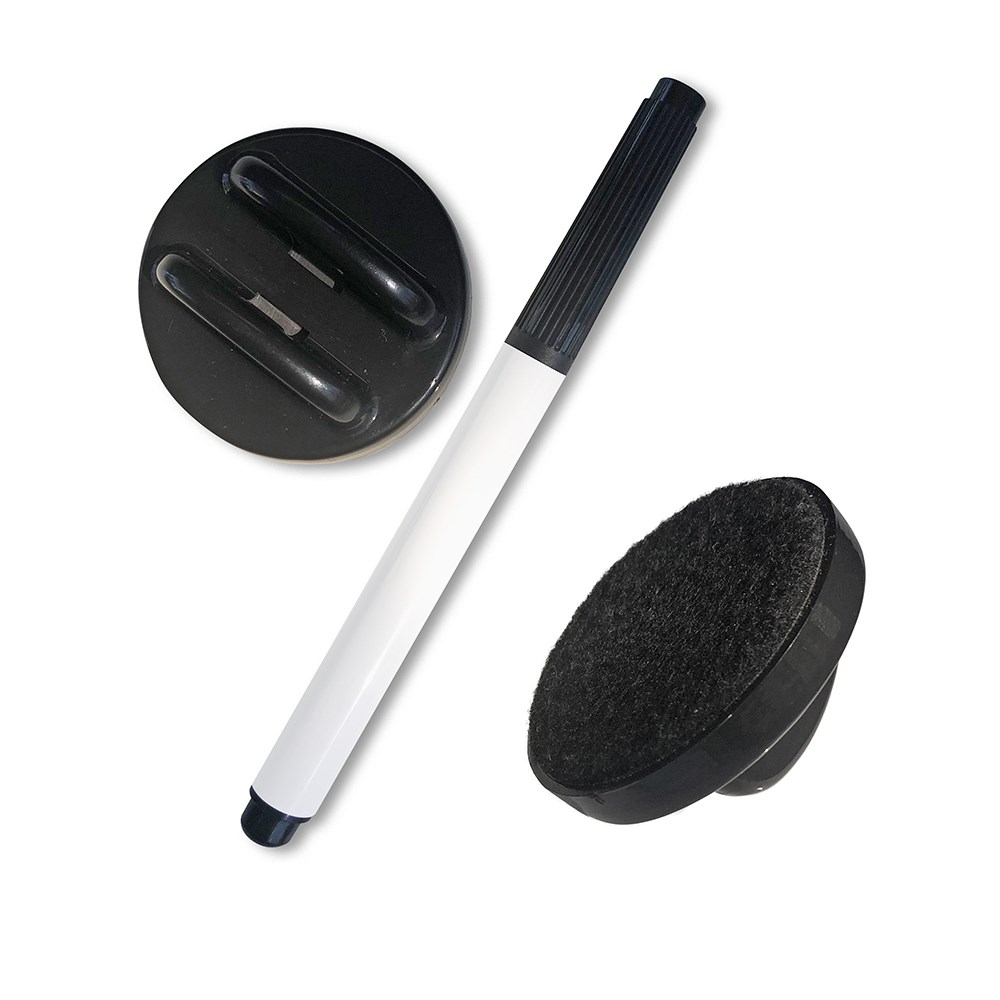 • Magnetic eraser holds the included pen.