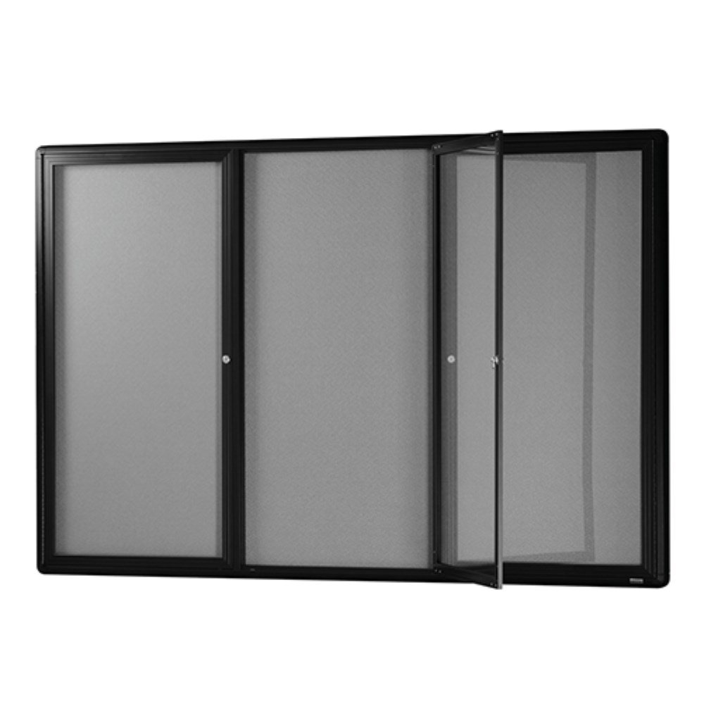 Visionchart Be Noticed Hinged 3 Door Notice Case 1830W x 48D x 1220mmH Black/Grey Fabric