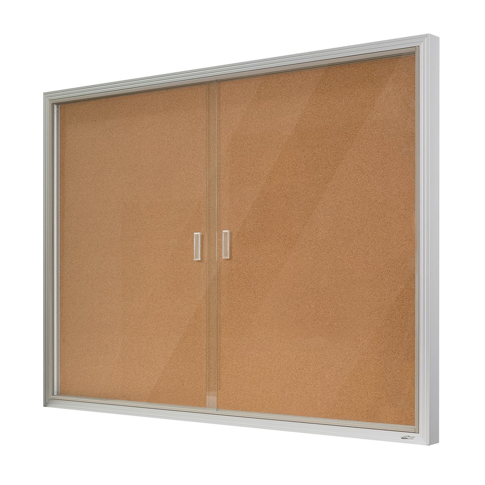 • Visionchart Be Noticed Sliding 2 Door Notice Case 1525W x 48D x 915mmH Black/Cork