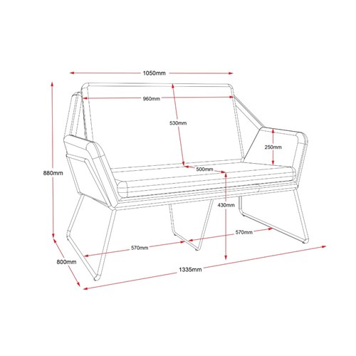 Rapidline Cardinal Lounge Chair 2 Seater 1335W x 690D x 890mmH Charcoal Ash