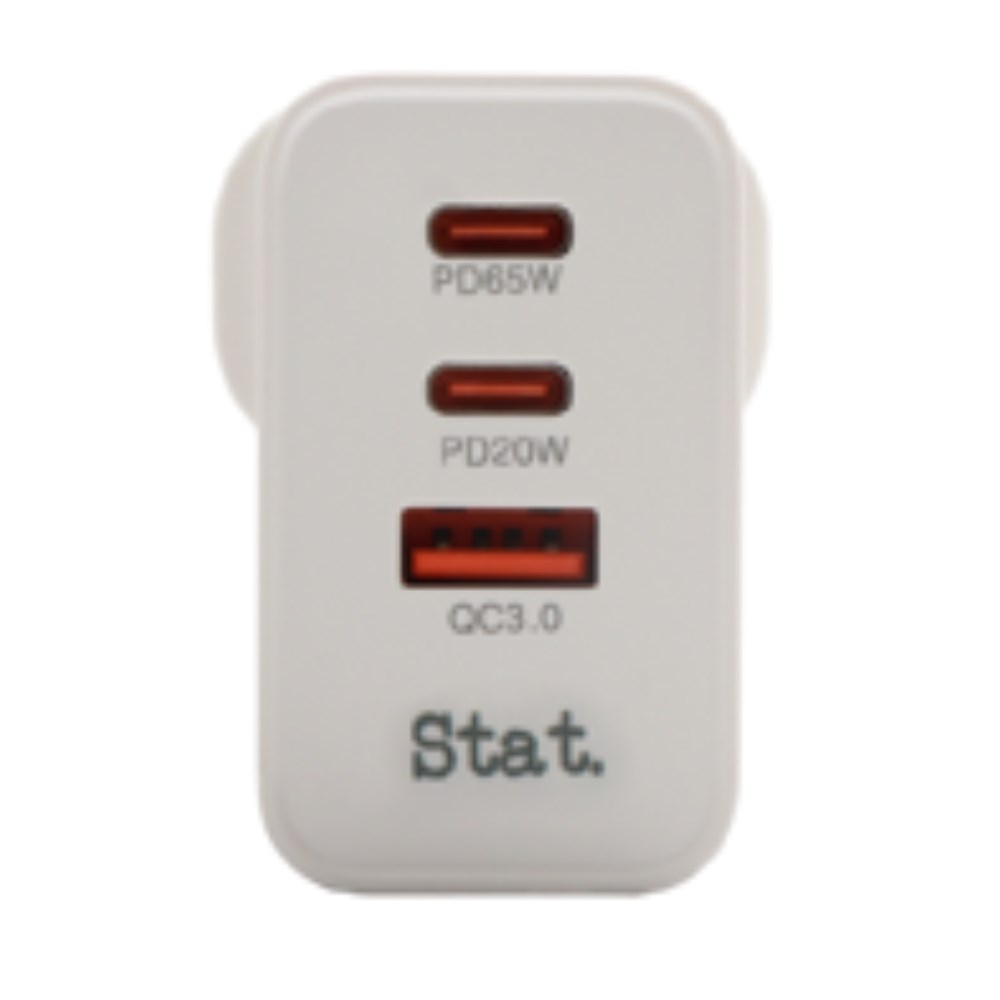 (GNS-95493) STAT 65W GAN USB-A & USB-C FAST WALL CHARGER - White