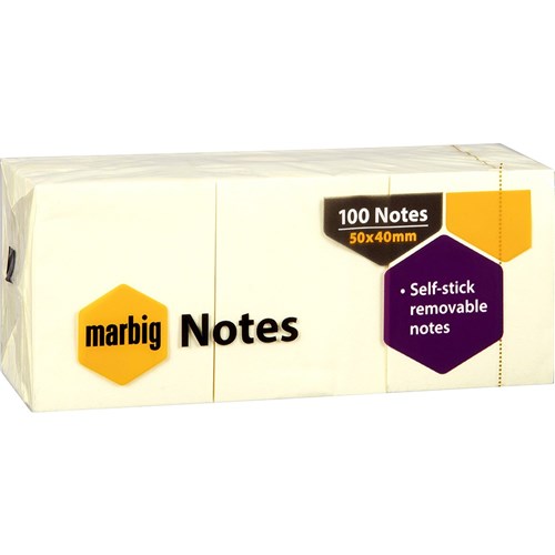 • Marbig Repositionable Notes 40 x 50mm Yellow 100 Sheet Pad Pack Of 12
