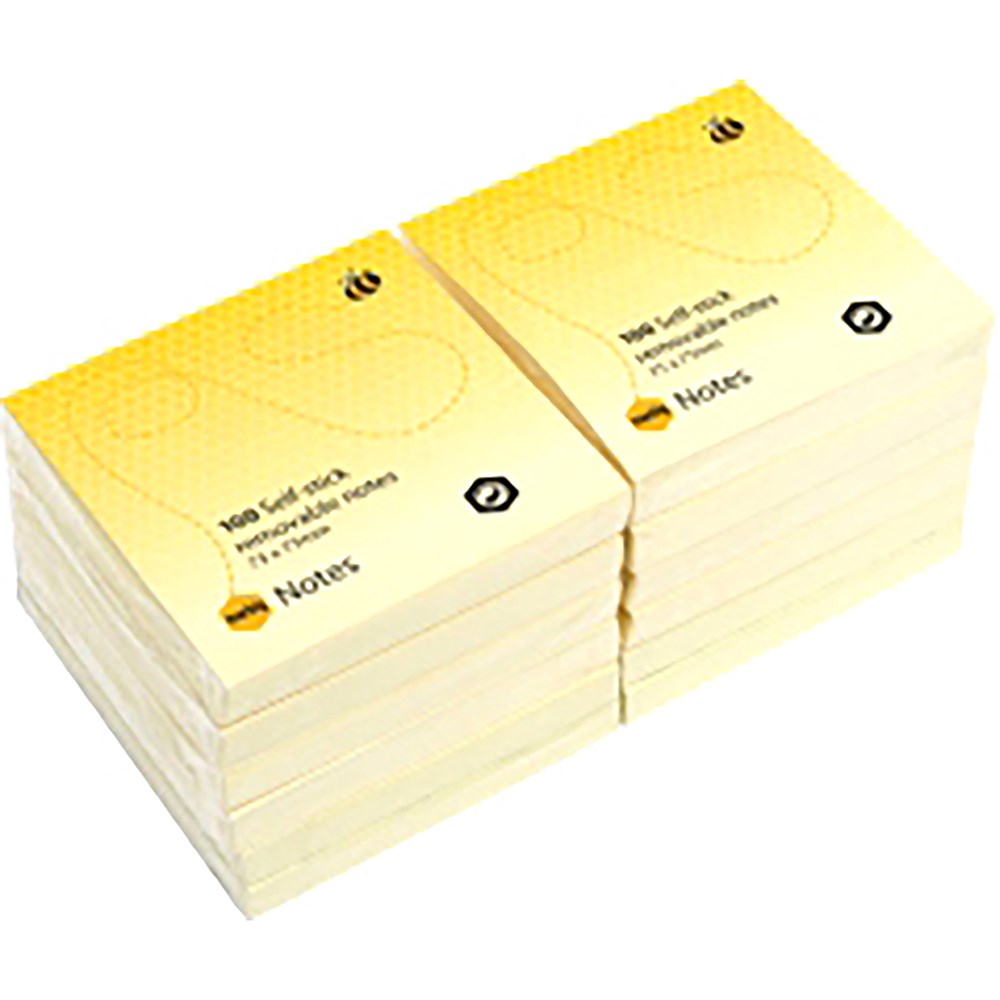 Marbig Repositionable Notes 75 x 75mm Yellow 100 Sheet Pad Pack Of 12