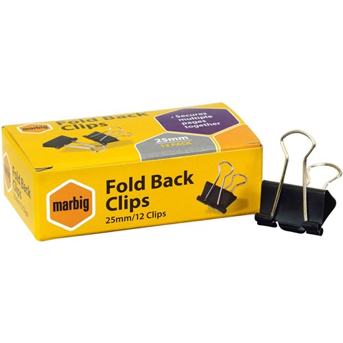 • Marbig Foldback Clips 25mm Black Box Of 12 0