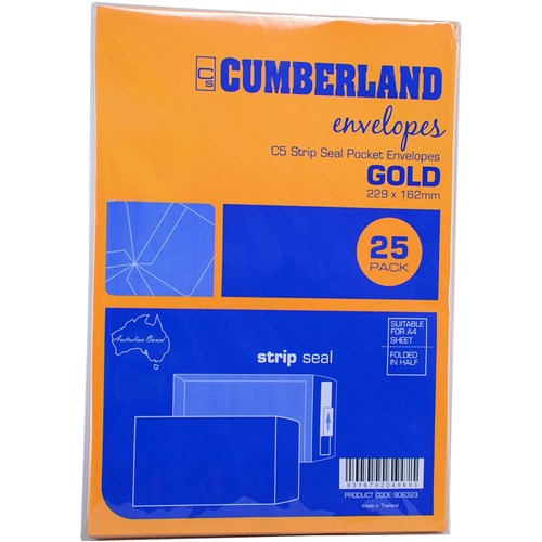 Cumberland Plain Envelope Pocket C5 162 x 229mm Strip Seal Gold Pack Of 25