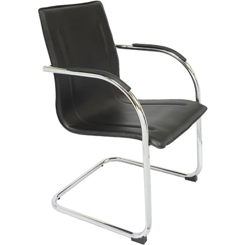 Comfo Visitor Chair Chrome Cantilever Frame With Arms Black PU Seat Back and Arms