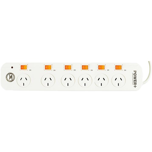 Italplast Power+ 6 Outlet Powerboard Individual Switches Surge & Overload Protection