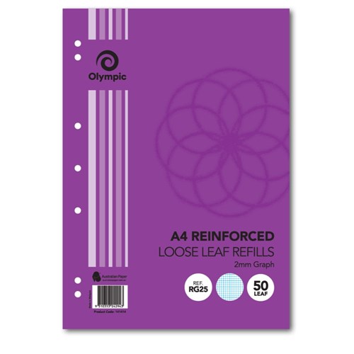 OLYMPIC REINFORCED REFILLS A4 297x210mm 50Leaf 2mm Graph Pack of 50