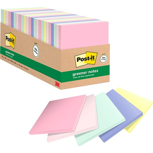 POST-IT 654R-24CP-AP NOTES Cab Pack 100%Rcyc 76x76 Pastel