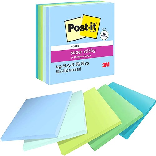 POST-IT 654-5SST NOTES Super Sticky Tropic 76x76mm