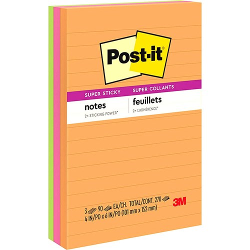 Post-It 660-3SSUC Super Sticky Notes 98mmx149mm Energy Boost Pack of 3