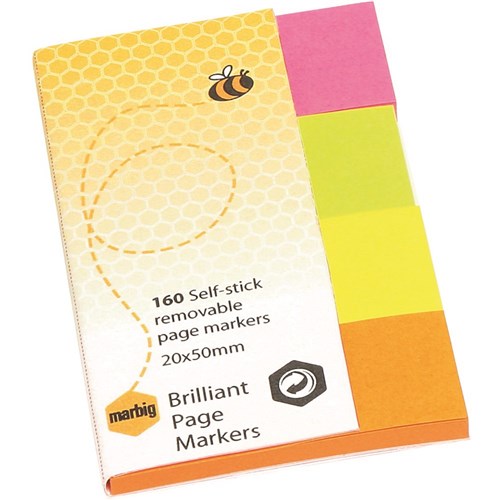MARBIG BRILLIANT PAGE MARKERS 20x50mm 160Sht Assorted