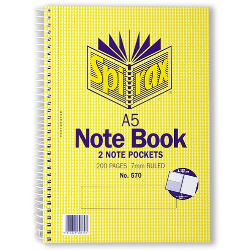Spirax 570 Notebook Perforated With Note Pockets A5 Ruled 200 Page Side Opening