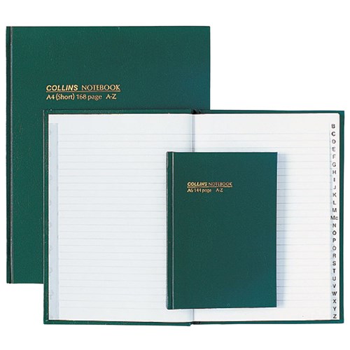 Collins No.5804 Notebook Hard Cover A4 Short Ruled A-Z 168 Page Green