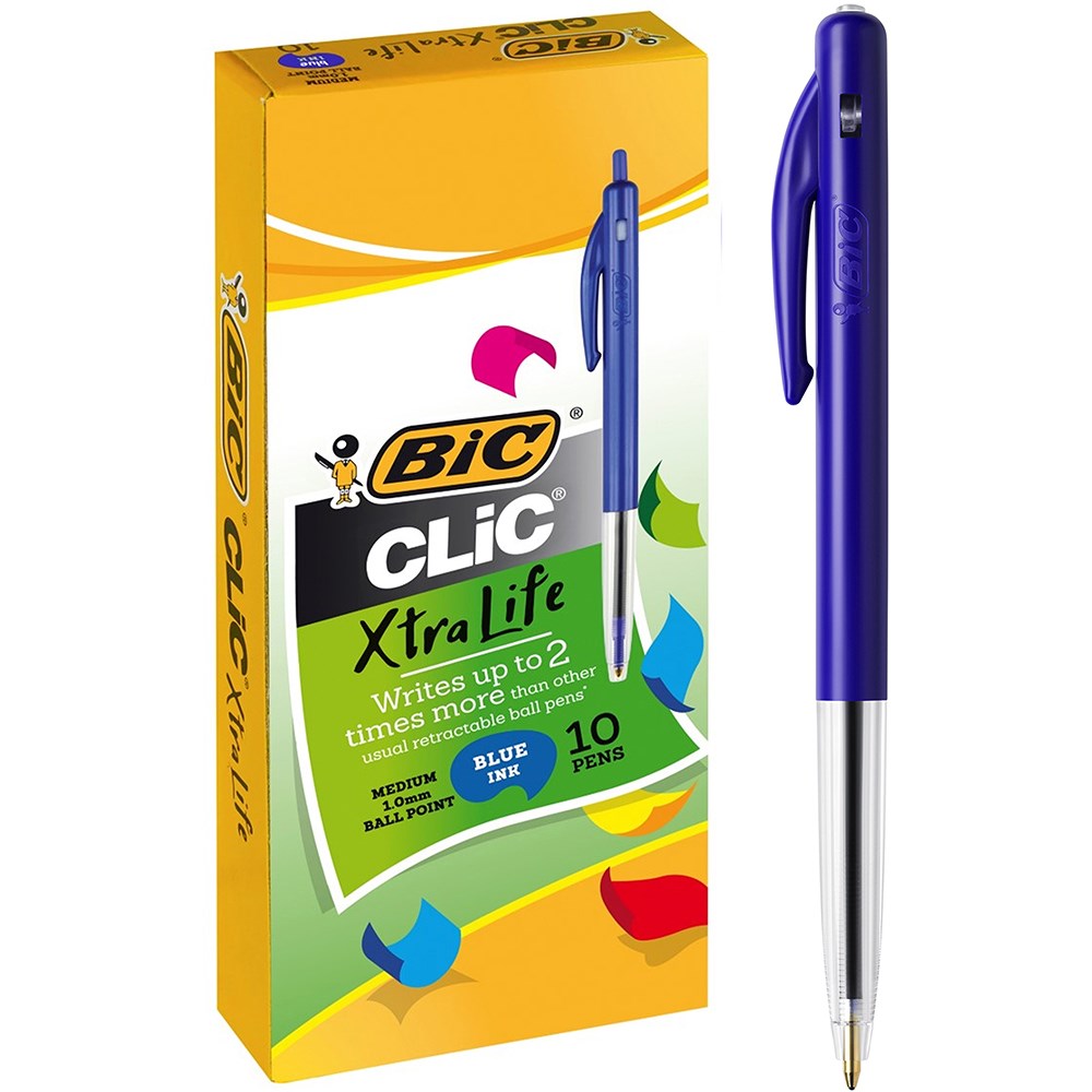 Bic Clic M10 Xtra Life Ballpoint Pen Retractable Medium 1mm Blue Pack of 10
