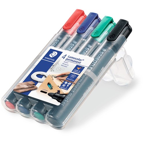 Staedtler 352 Lumocolor Permanent Marker Bullet 2mm Assorted Wallet of 4