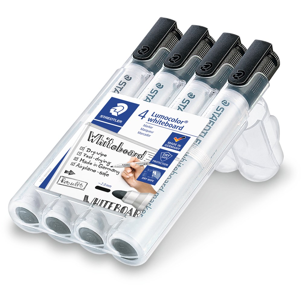 Staedtler 351 Lumocolor Whiteboard Marker Bullet 2mm Black Wallet of 4
