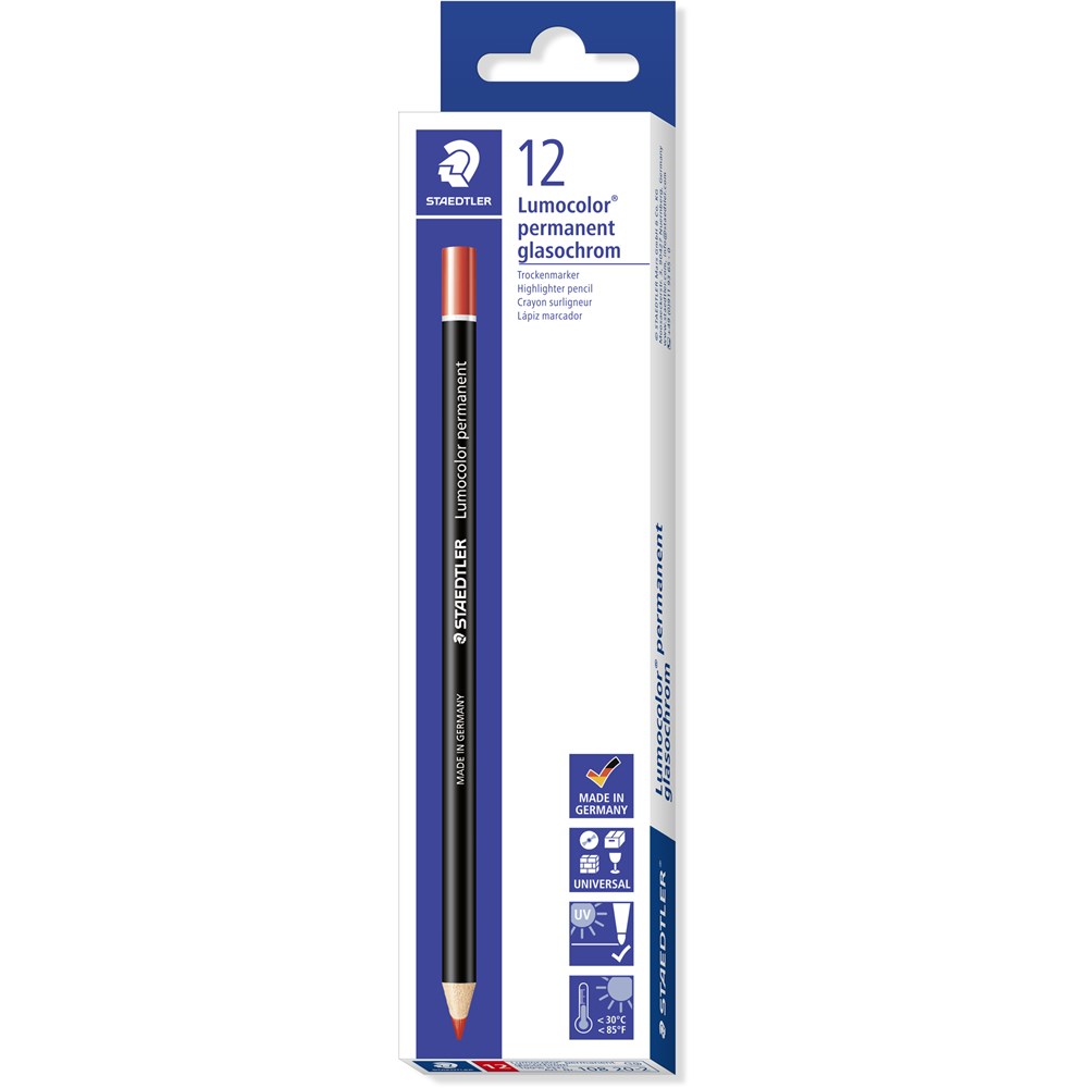 Staedtler 108 Lumocolor Glasochrom Permanent Pencil Red